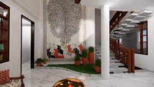 A contemporary bliss for a small family in Ahmedabad, trying to blend the flavour of village with a modern touch.